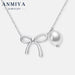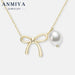 925 Sterling Silver Gold Bow Pearl Necklace for Bowknot Sweet Unique Design Fashion Elegant Style