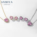 ANMIAY New Fine 925 Silver Heart Zircon Necklace Pink Crystal Stud Earrings Luxury Earrings Necklace Set for Women