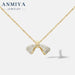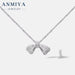 ANMIAY Simple and Fashionable S925 Silver Necklace with Zirconia Sweet and Lovely Girl'S Bow Necklace