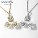 ANMIYA 2024 Women'S High Quality 925 Silver Square Zircon Pendant Necklace and Crystal Earrings Set for Wedding