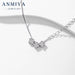 ANMIYA 925 Sterling Silver Fashion Zircon Plum Blossom Four Leaf Clover Silver Necklace for Bestfriend Jewelry Best Gift