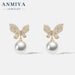 ANMIYA Best Selling Butterfly Water Resistant Zirconia Cute Sweet Earrings Stud 925 Silver High Quality Earring for Women Summer