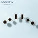 ANMIYA Geometric Shape round Squaer Black 925 Silver Vintage Piercings Stud Earrings 3 Pair for Women
