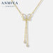 ANMIYA OEM 18K Gold Plated 925 Sterling Silver Female Necklace with Long Tassels and White Shell Adjustable Link Chain for Women