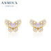 ANMIYA Pink Butterfly Piercing Earrings Silver 925 Pearl Zircon Stud Earrings for Women