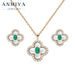 Customized Elegant New Tide Green Zircon Four Leaf Clover Necklace and Earrings Sets 925 Silver for Women