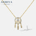 Dainty 925 Sterling Silver Micro Pave 18K Gold Plated Dreamcatcher Pendant Custom Necklace with Cubic Zirconia Link Chain