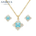 Fashion Jewelry Sets Shiny 925 Silver Zircon Pendant Sky Blue Earrings and Necklace Set Women Cz Earrings Stud Set for Gift