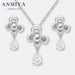 Hot Sale Fashion Jewellery Necklace Earrings Set Inlaid Zirconia Pearl Flower 925 Silver Stud Earrings Necklace for Women